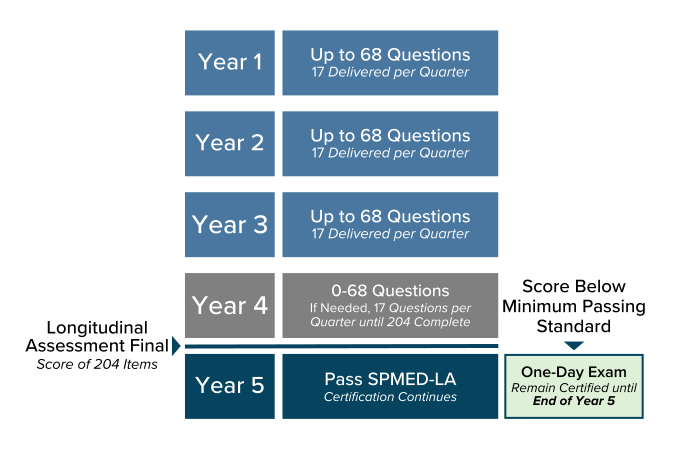 *If you prefer not to participate in SPMED-LA, you may opt to withdraw from longitudinal assessment after completing the registration process. In this case, you would be required to take and pass the traditional half-day Sports Medicine examination in year four or five of your 5-Year Cycle to maintain certification.