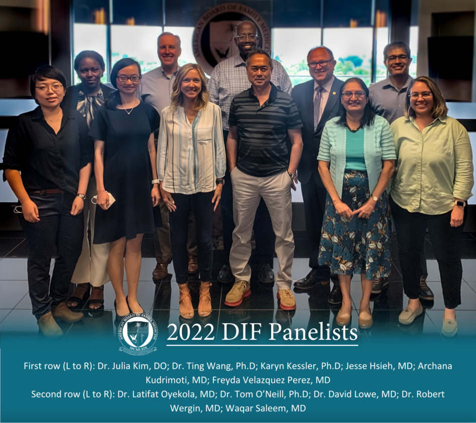 ABFM annually assembles an 11-person DIF Panel, comprised of eight physicians of diverse backgrounds, as well as linguist Jennifer Cramer, Ph.D., ABFM’s Vice President of Psychometrics Tom O’Neill, Ph.D., and Senior Psychometrician Ting Wang, Ph.D., to review exam questions for potential bias.